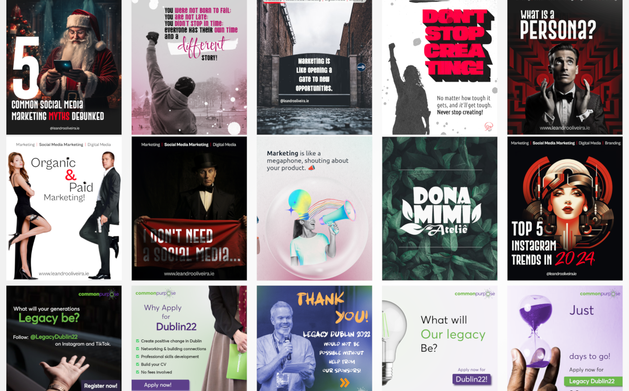 A collection of curated social media graphics designed for Instagram, Facebook, ads, and digital campaigns. Each visual follows a strategy-first approach, combining clean design with clear messaging.